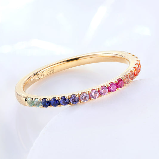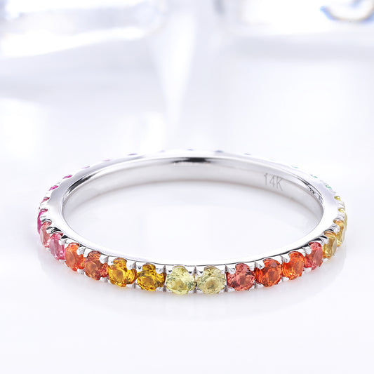 1.8MM Lab Grown Sapphire Midi Rainbow Full Eternity Band ring in gold