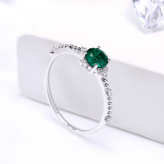 0.5ct Lab Grown Emerald Deep Green Zambia Round floral Engagement Ring