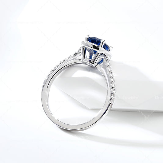 1.5ct Oval Lab Grown Sapphire Royal Blue 6x8mm Classic Halo design Engagement ring in 18k white gold