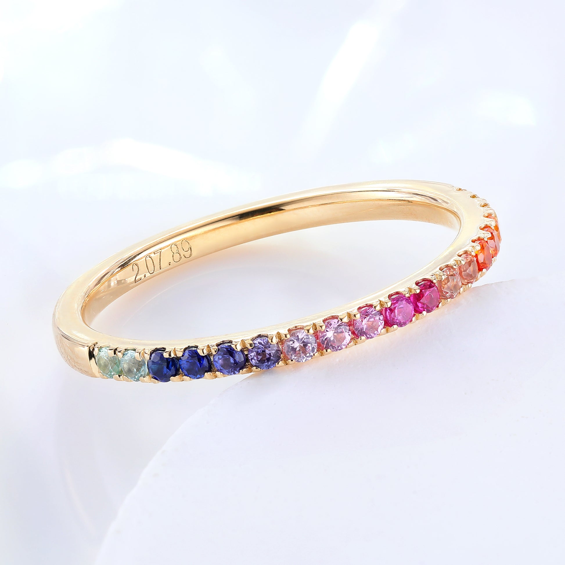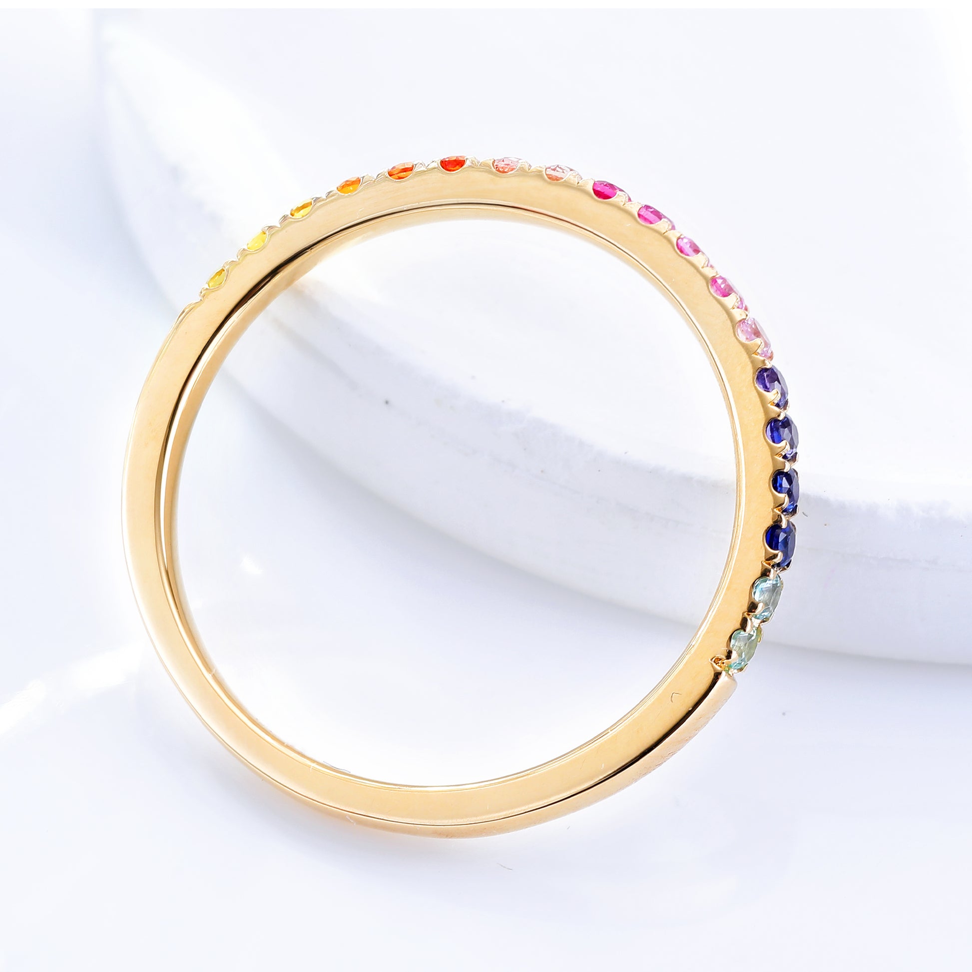 1.8MM Lab Grown Sapphire Midi Rainbow Half Eternity Band ring in gold